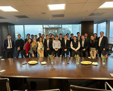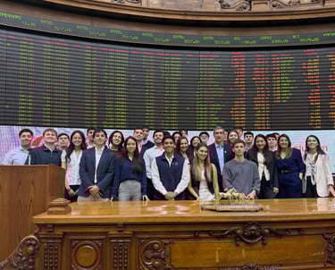 Realizamos una visita a BTG Pactual, donde conocimos en mayor profundidad el funcionamiento del área de Investment Banking y el rol de los bancos de inversión en los mercados financieros. Durante la jornada también se desarrollaron instancias prácticas relacionadas con renta variable y análisis financiero, permitiendo a los estudiantes aproximarse a la dinámica del trabajo en la industria.