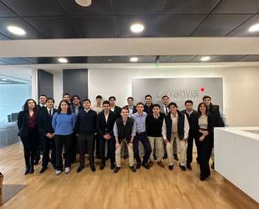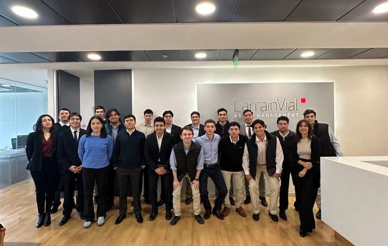 Realizamos una visita a LarrainVial, donde se abordaron distintos temas relacionados con la gestión de inversiones, incluyendo la importancia de la asset allocation y el uso de métodos cuantitativos para la valoración de activos y el desarrollo de modelos financieros. Durante la instancia también conocimos el rol de la firma dentro del sistema financiero chileno y su participación en los mercados de capitales.