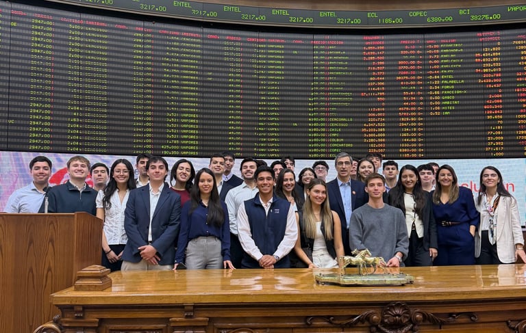 Como parte de las actividades del mes de la mujer, el Club de Finanzas asistió al evento Ring the Bell en la Bolsa de Santiago, junto a WeAreMef. La jornada estuvo centrada en destacar el rol de las mujeres en el mercado financiero y en seguir impulsando su presencia en una industria cada vez más dinámica, exigente y relevante para el desarrollo del país.