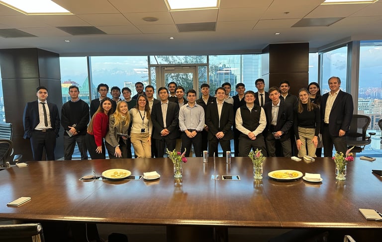 Realizamos una visita a J.P. Morgan donde tuvimos la oportunidad de conocer el rol que cumple la institución en el mercado financiero chileno y global. Durante la instancia también se presentó el programa "Drive the Future", iniciativa orientada a estudiantes que buscan desarrollar su carrera profesional a través de oportunidades de práctica dentro de la firma.